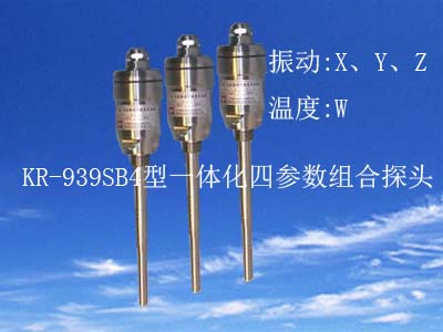 ●外型和安装结构:探头为不锈钢全封闭防水结构,重量约0.6kg ,探头是以外螺纹形式,安装于风机减速箱的螺纹安装孔中,温度探杆插入减速箱内。螺纹规格和探杆插深可在定货时申明。见说明书[图1]外型结构示意图。一体化四参数组合探头KR-939SB4型